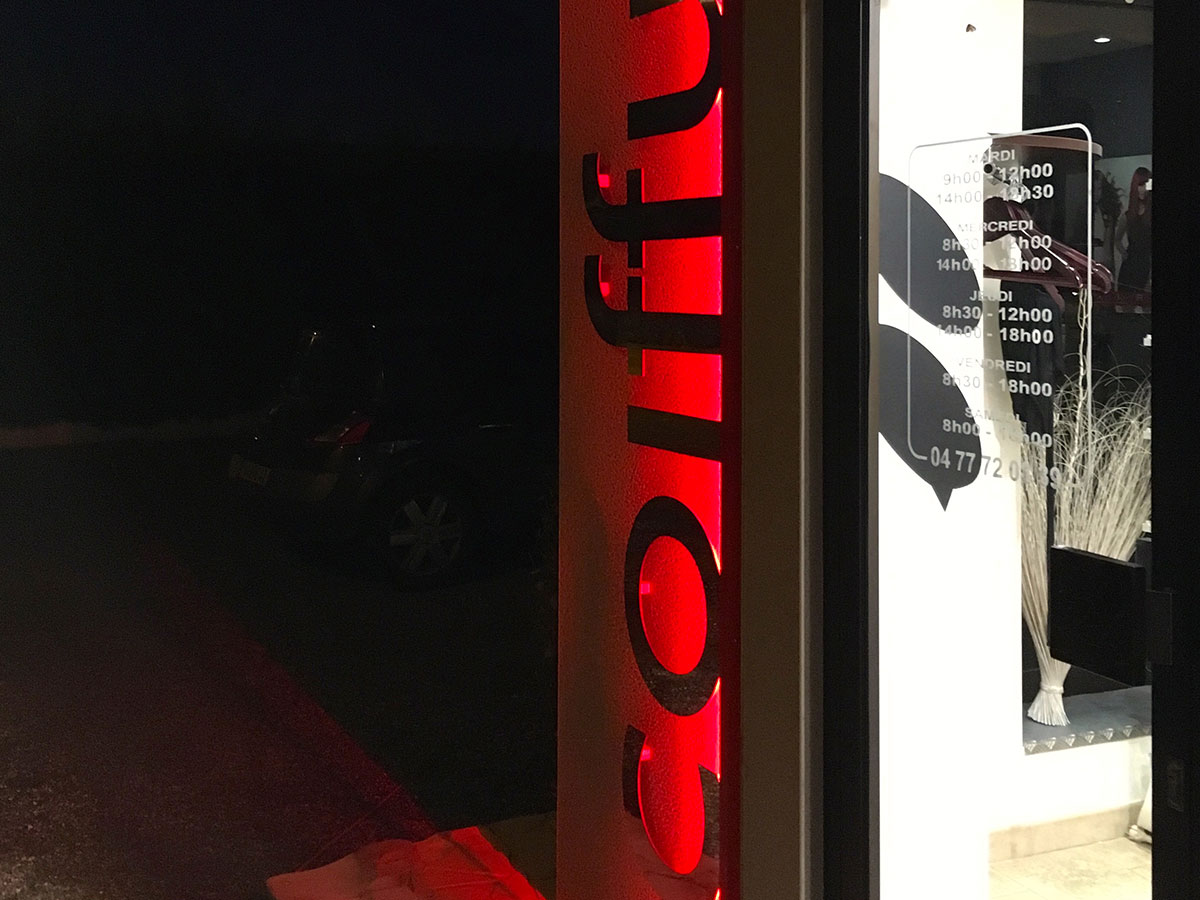 Il existe 3 grandes familles : le simple panneau ; les lettres 3D en relief et les enseignes lumineuses. Dans nos ateliers, nous déclinons ces familles selon votre besoin.