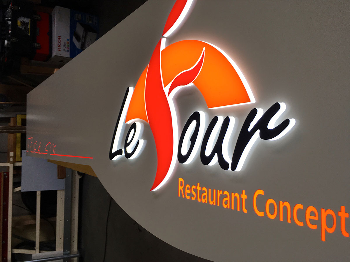 Qu’il soit lumineux (LED ou néon) ou non, il doit être lisible, bien proportionné et en cohérence avec votre image.