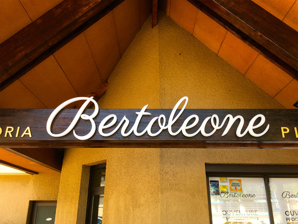 Les lettres peuvent être posées sur taquets d’éloignement afin de créer un effet de légèreté et de relief particulièrement soigné. Un rétro-éclairage LED peut également être intégré pour renforcer l’impact visuel.