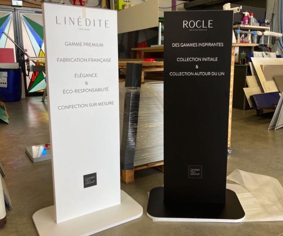 Typographie, design, dimensions, finitions : chaque projet est personnalisé. Nous travaillons avec les gammes de couleurs RAL® et Pantone® pour un rendu fidèle à votre identité visuelle.